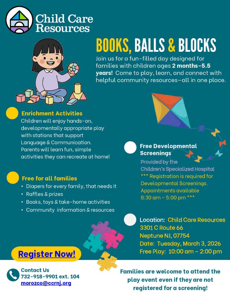20 Feb Books Balls & Blocks – March 3, 2026 Posted at 10:18h in Uncategorized by ccradmin 0 Comments 0 Likes