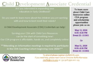 01 Apr Learn about Child Care Resources online Child Development Associate Credential (CDA) program and scholarship opportunities Posted at 12:46h in Uncategorized by ccradmin 0 Comments 0 Likes